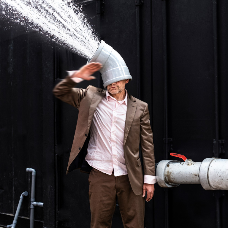 Andreas Denk is a choreographer, dancer, set designer and artistic director of the Plan d- foundation. With his distinctive signature style, he creates physical, visual performances for young and old, in which humour, imagination and everyday objects come together in surprising choreographies.